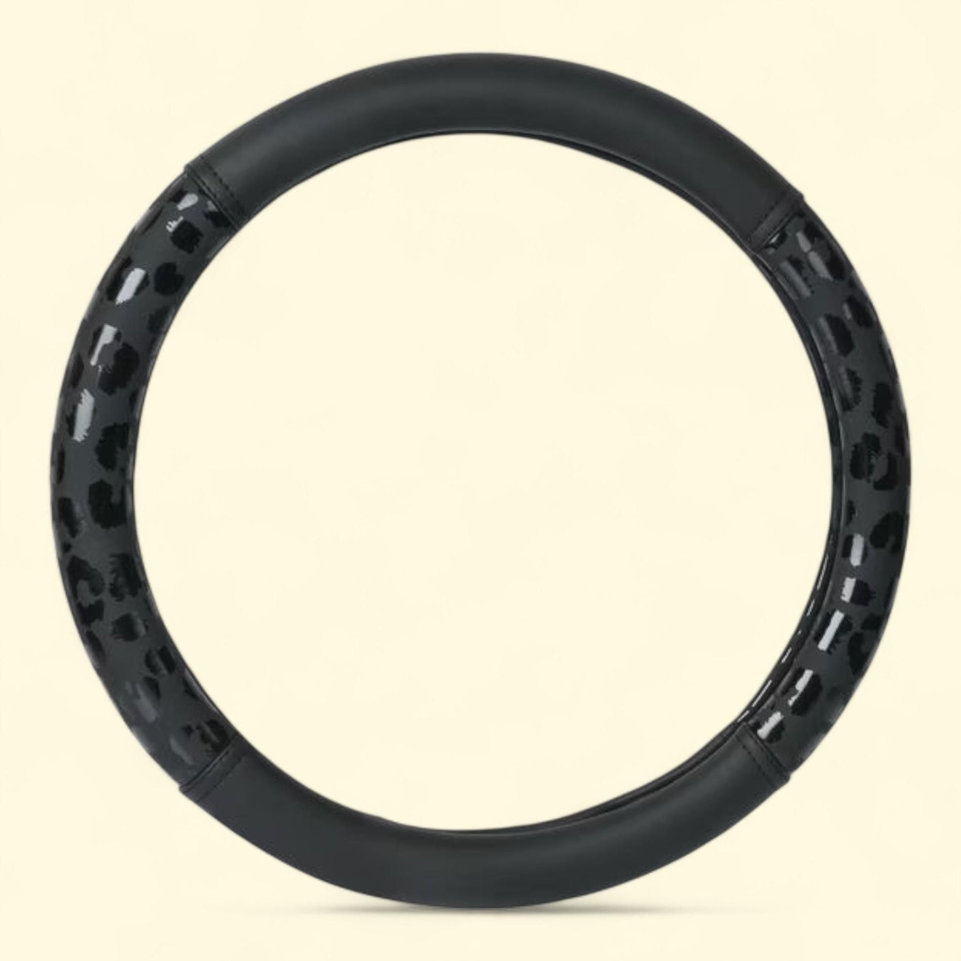 Auto Drive Black Leopard Faux Leather Steering Wheel Cover, Universal Fit for Sedans, SUVs, 1 Set