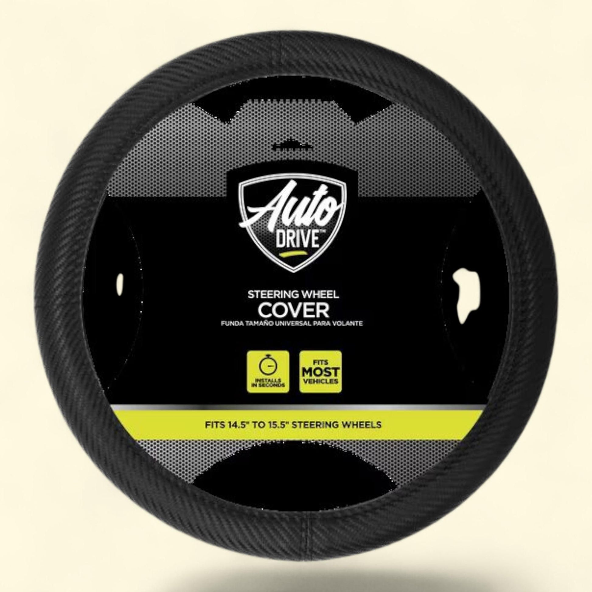 Auto Drive Car Steering Wheel Cover, Carbon Fiber Leather, Black, Universal Fit, 1 Piece