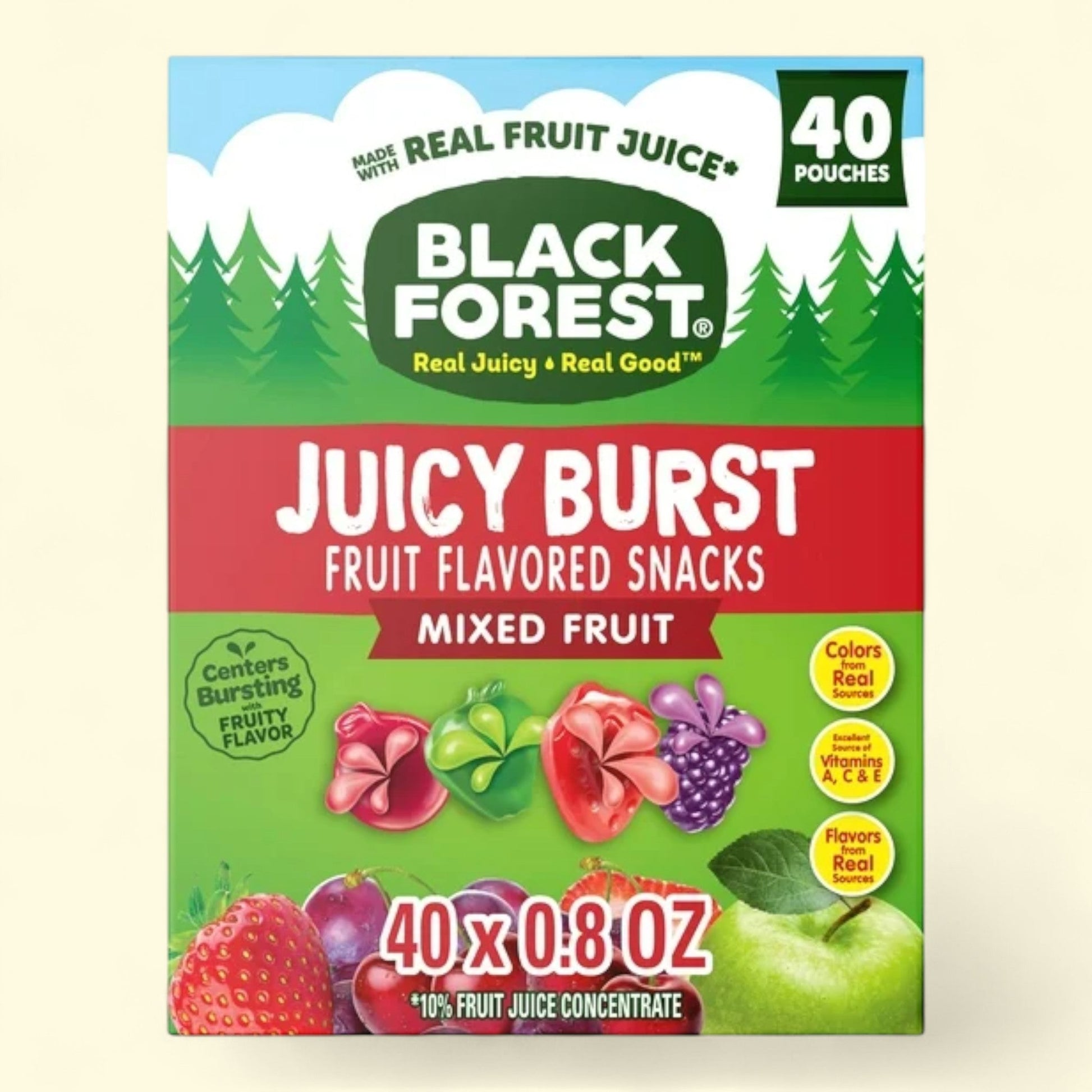 Black Forest Juicy Burst Fruit Flavored Snacks, Mixed Fruit, 0.8 oz, 40 Count