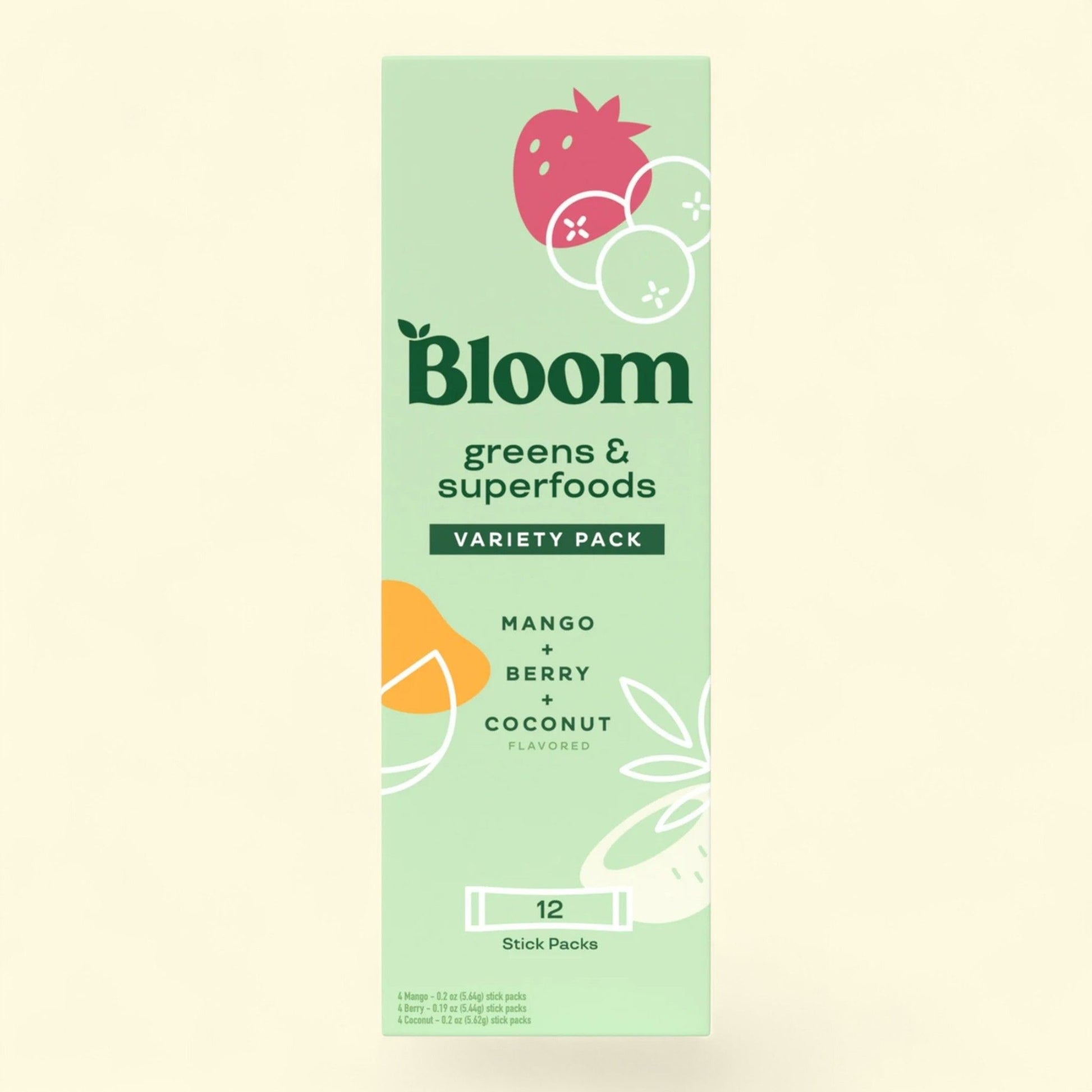 Bloom Nutrition Greens & Superfoods Powder Sticks, 12 Count