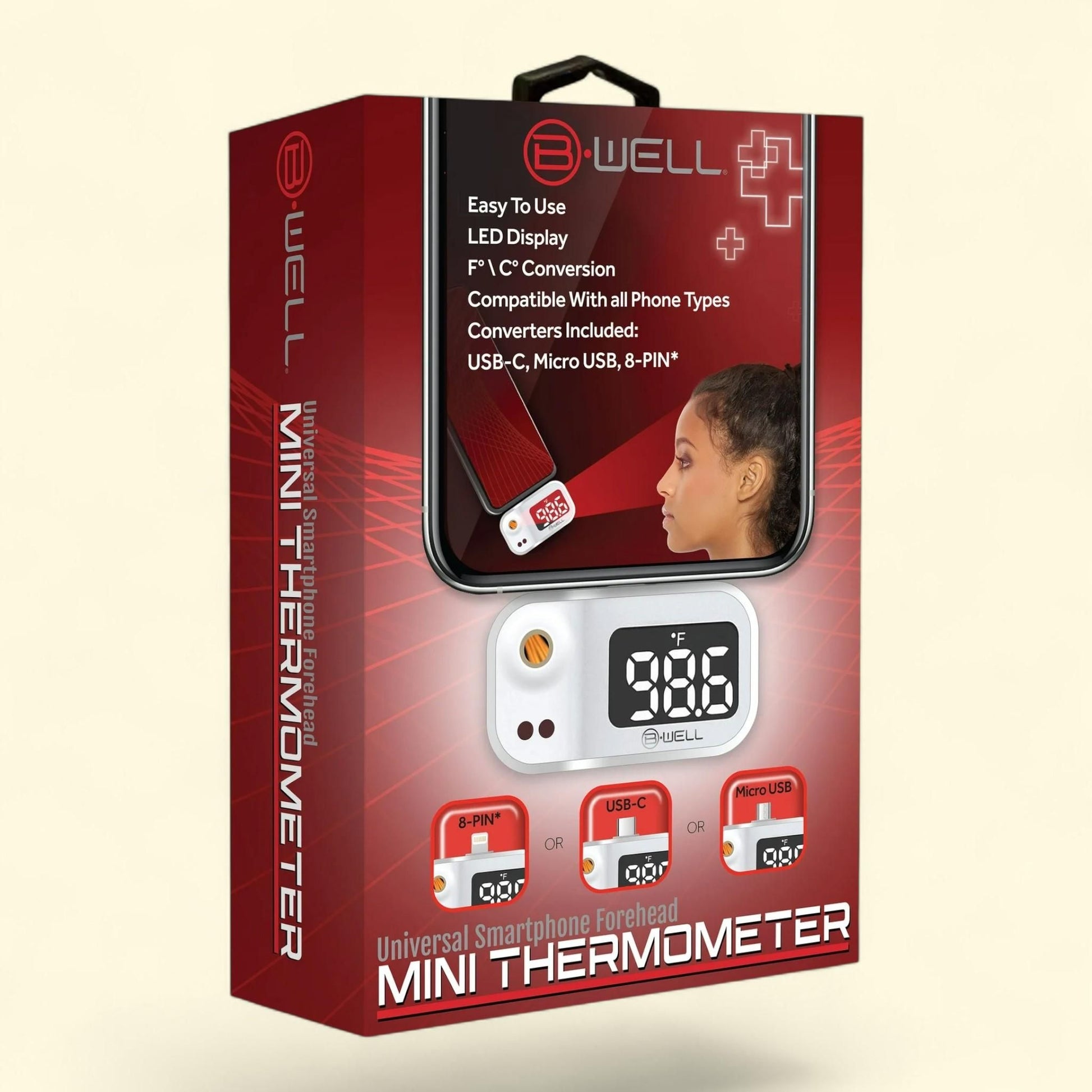 BWell Smartphone Mini Forehead Thermometer, Infrared, Works with all Phones