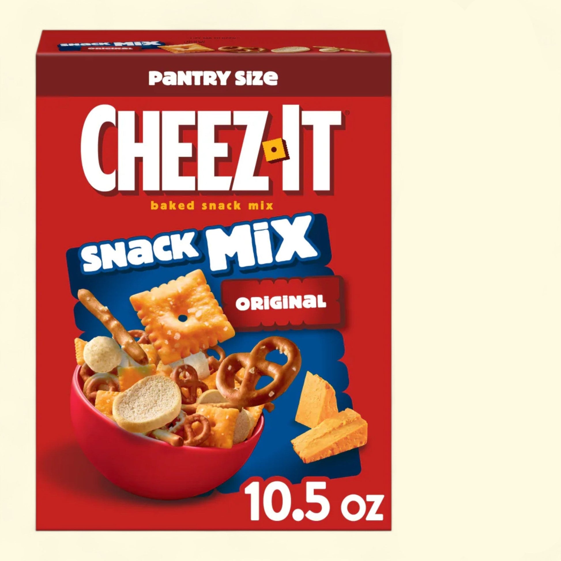 Indulge in the deliciously crunchy Cheez-It Crackers, Classic Mix - a perfect blend of Cheez-It crackers, salty pretzels, mini toasted bread slices, and cheesy rice balls that will satisfy all your snack cravings. Made with 100% real cheese aged for a bold taste, this snack mix is packed with flavor and sure to please your taste buds. Whether you're cheering on your favorite sports team, enjoying a snack spread with friends, or simply need a pick-me-up during the day, this snack mix is the ideal choice. Conveniently packaged for freshness, this 10.5oz box is ready to enjoy wherever you go. Experience snack satisfaction like never before with Cheez-It Crackers, Classic Mix.