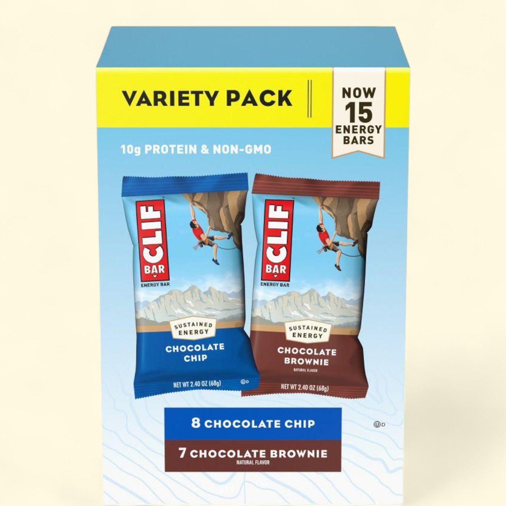 Fuel your active lifestyle with the CLIF Bar Energy Bars Variety Pack, featuring two classic flavors - Chocolate Chip and Chocolate Brownie. Each bar is packed with 10g of protein and made with quality, plant-based ingredients like organic rolled oats. Designed to provide sustained energy during long, moderate-intensity activities, CLIF BAR bars are a perfect on-the-go snack for hiking, climbing, or cycling. Crafted with purpose in two LEED certified bakeries, these non-GMO bars are free from high fructose corn syrup. With a delicious taste and convenient packaging, CLIF Bar Energy Bars are the perfect choice for those in need of a nutritious energy boost.