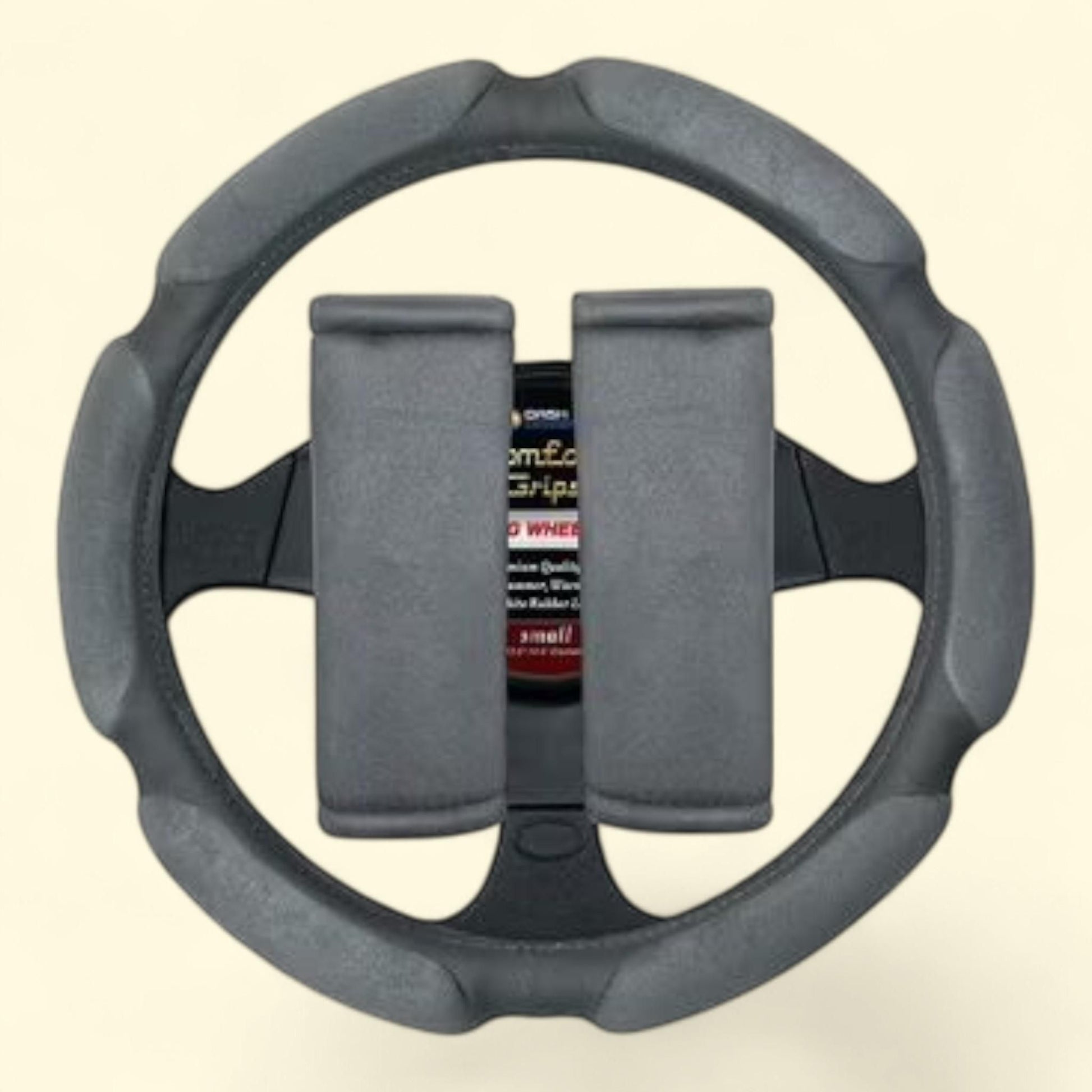 Comfort Grips Multi Grip Steering Wheel Cover/Seat Belt Cushions Combo Pack Large Grey