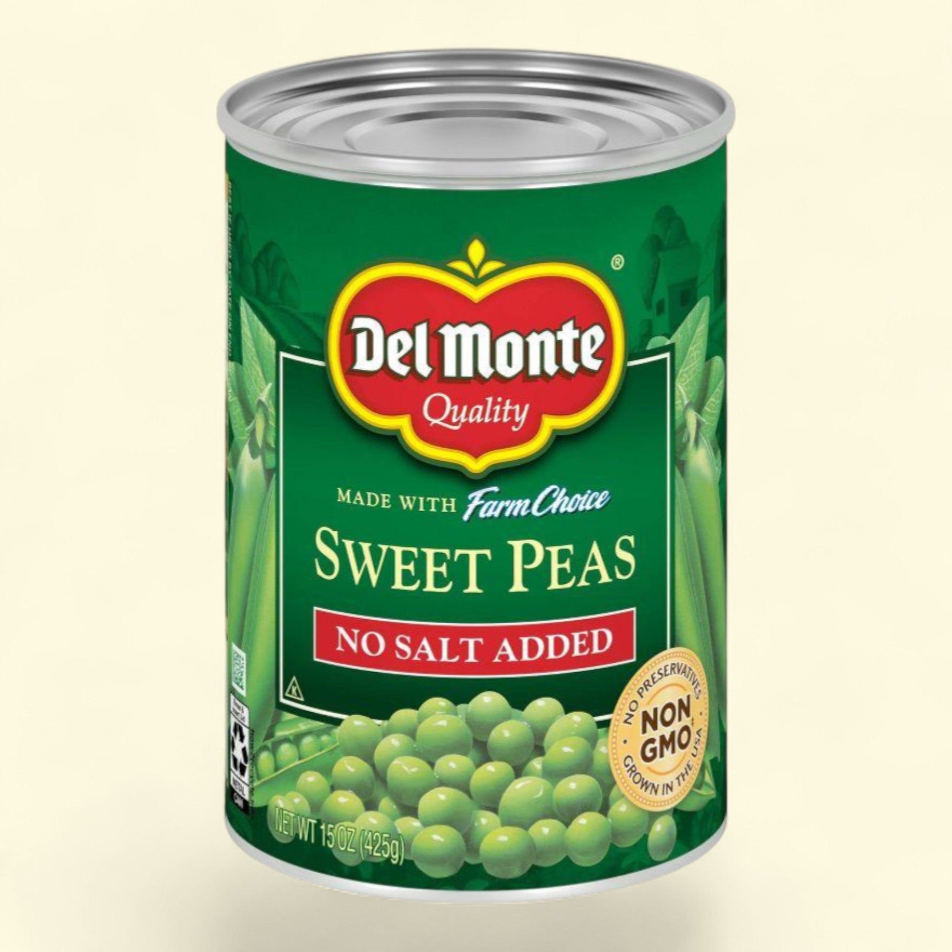 Indulge in the natural goodness of DEL MONTE Sweet Peas, 15oz can, a perfect addition to any meal. Harvested at peak freshness, these no salt added sweet peas are packed full of essential nutrients and delicious pea flavor. Made with the highest quality Non-GMO ingredients and free from artificial preservatives, you can trust that you are enjoying a wholesome and healthy vegetable option. Whether you're adding them to soups, salads, or enjoying them on their own, these canned sweet peas are a convenient and flavorful choice for any occasion. Treat your taste buds to the delicious taste of DEL MONTE FRESH CUT Sweet Peas today.