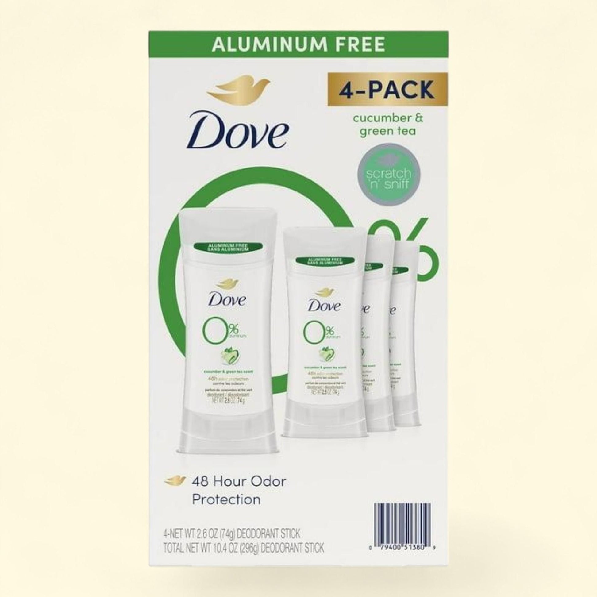 Dove 0% Aluminum Deodorant, Cucumber and Green Tea., 2.6 oz., 4 pk.