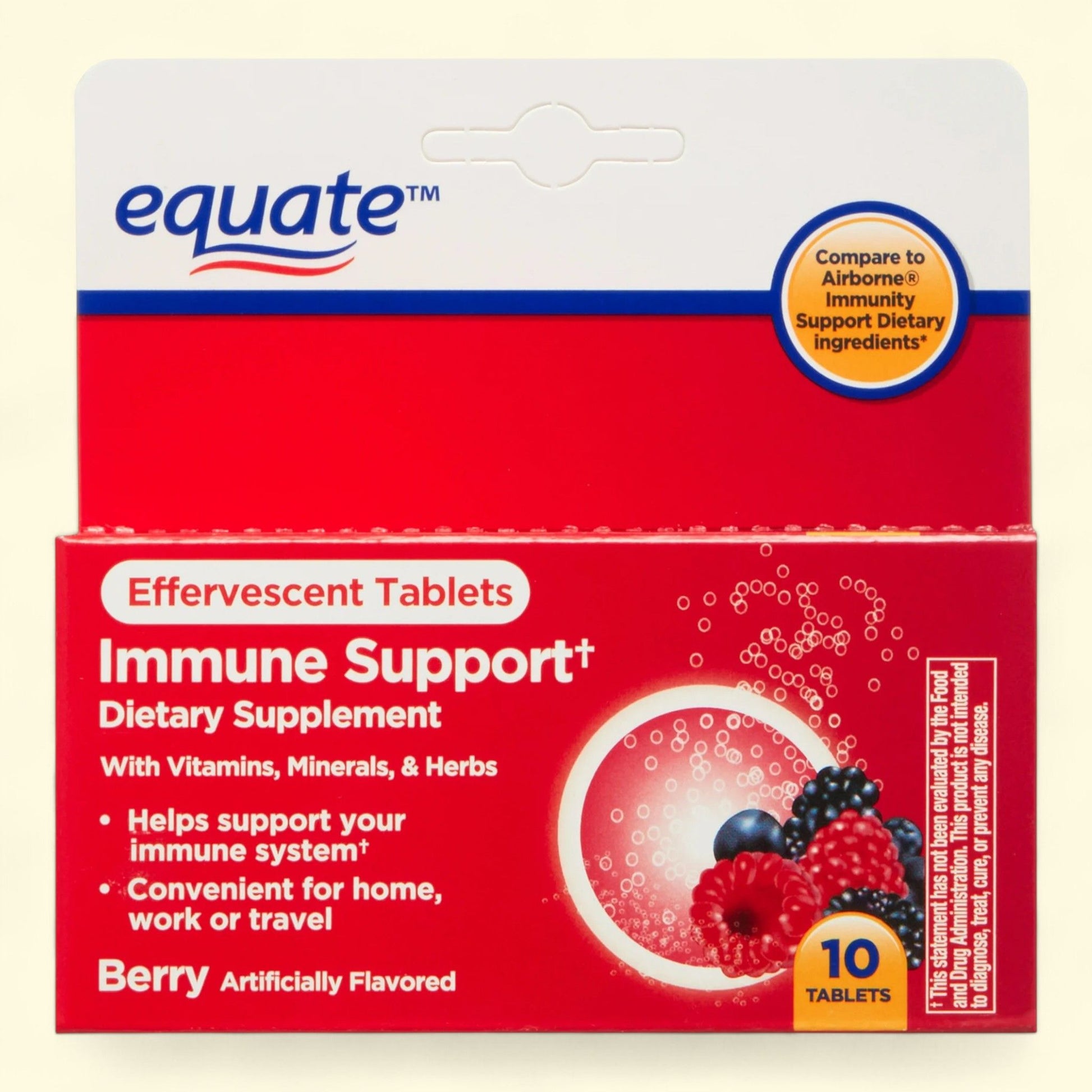 Equate Immune Support Effervescent Tablets, Berry Flavor, 10 Count