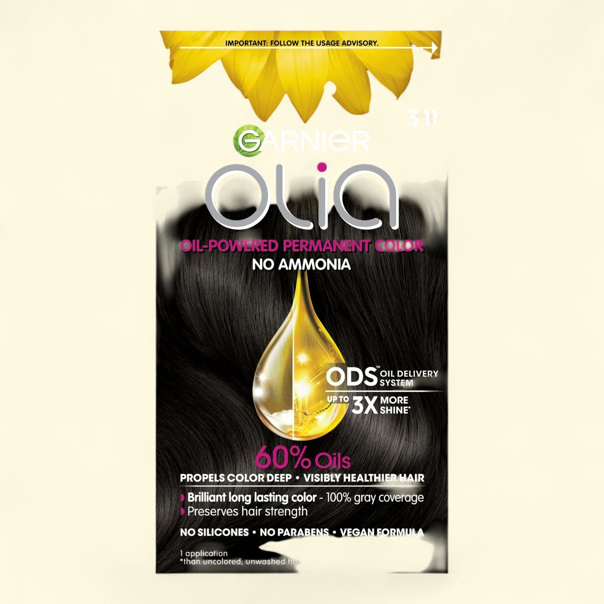 Garnier Olia Hair Color, 3.11 Darkest Platinum Brown, 1 Pack