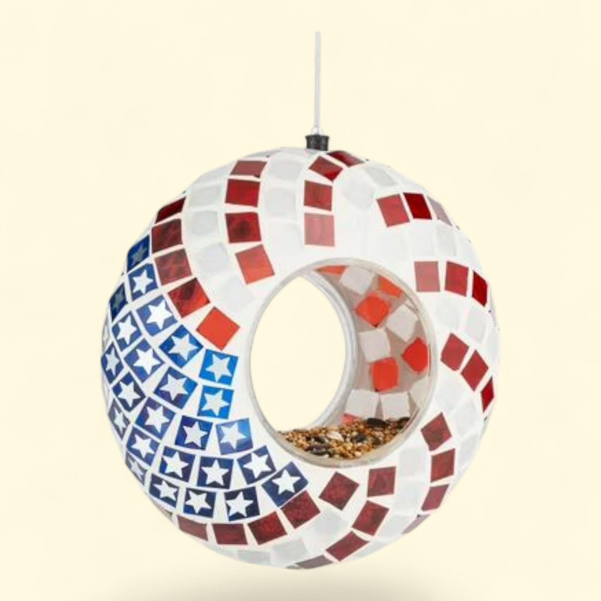 Hanging Glass Bird Feeder, Patriotic 1 count