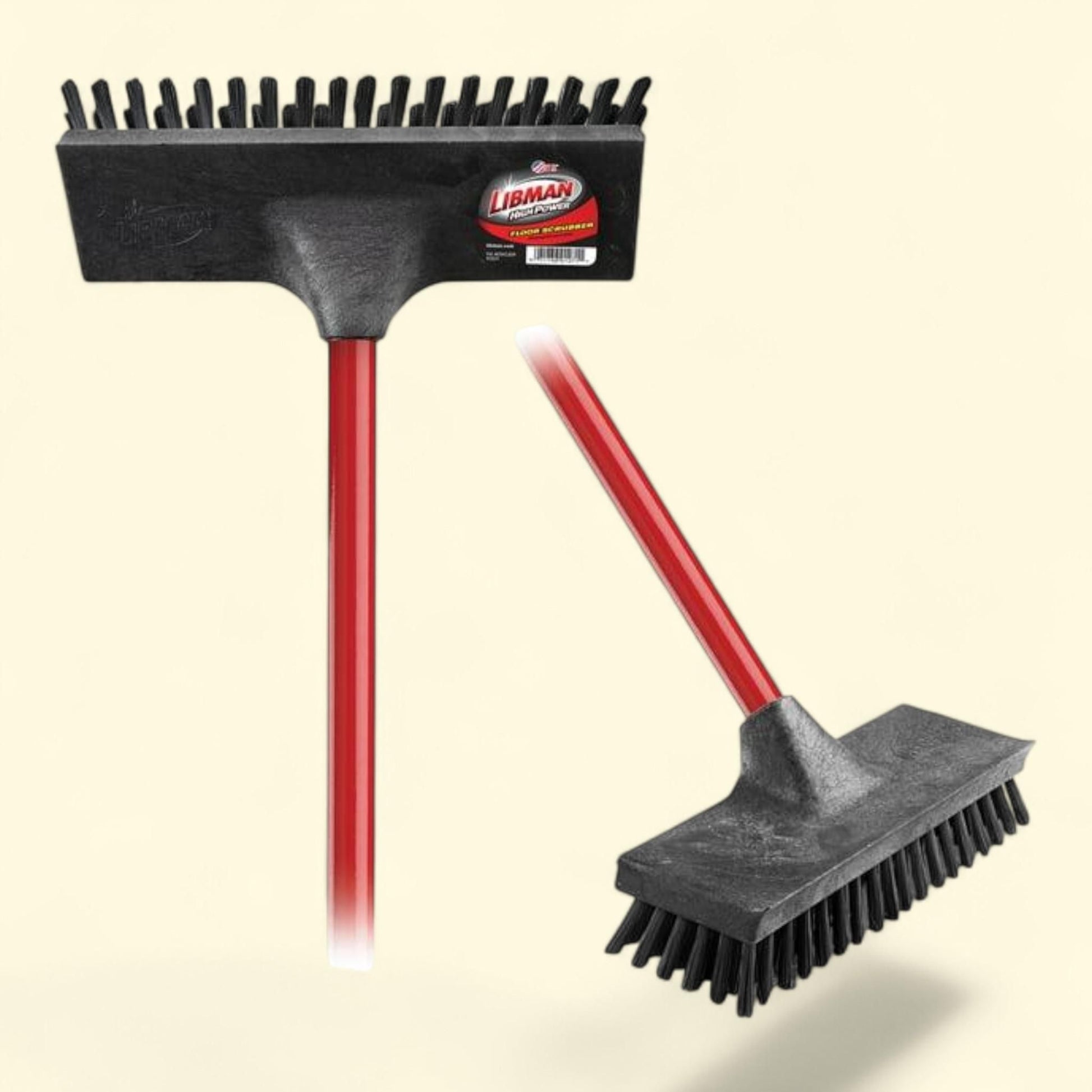 Libman Floor Scrub Brush, High Power, Steel Handle, Polypropylene Block, Red Black