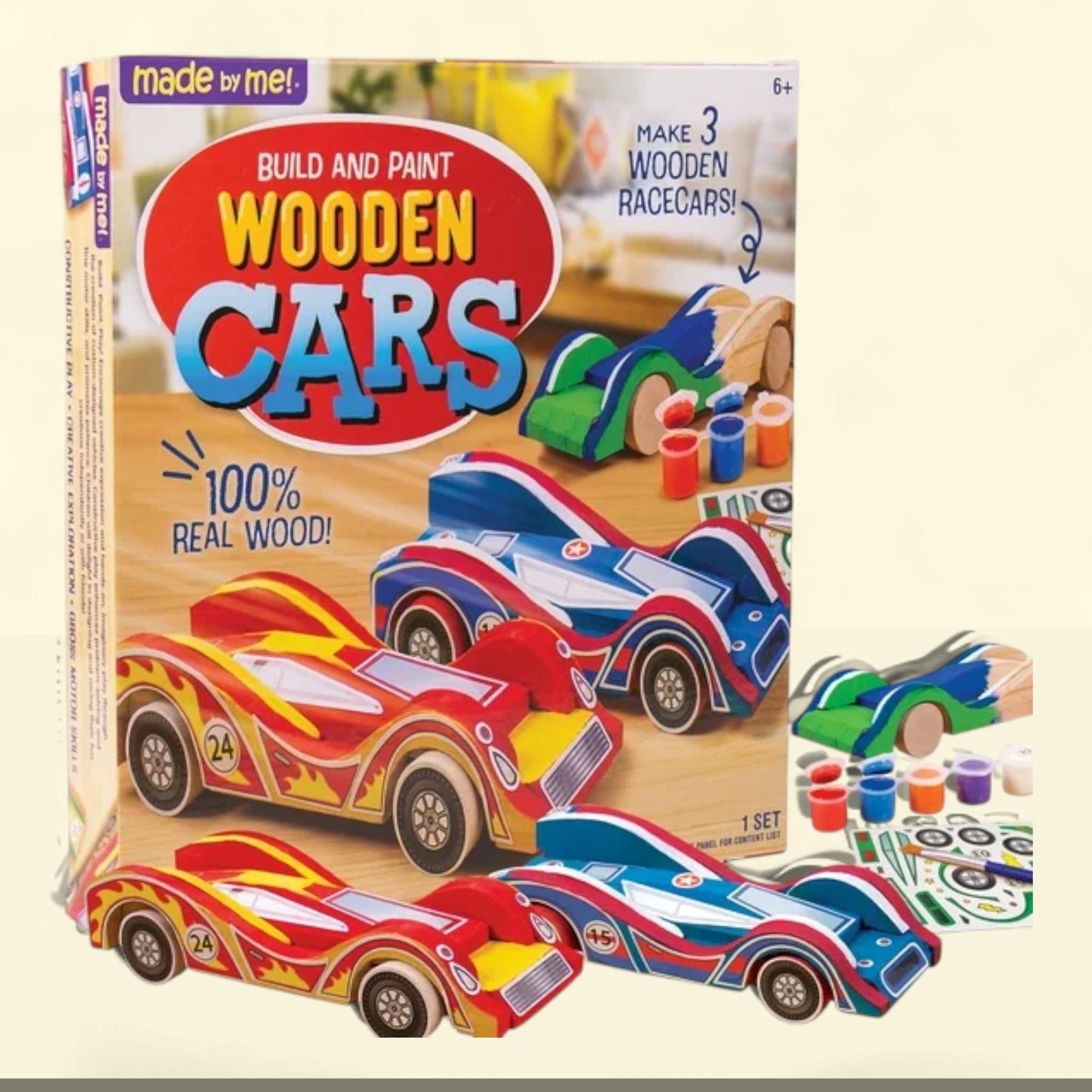 Made by Me Build & Paint Wood Cars, 3 Race Car with Moving Wheels, 6+, 1 ct