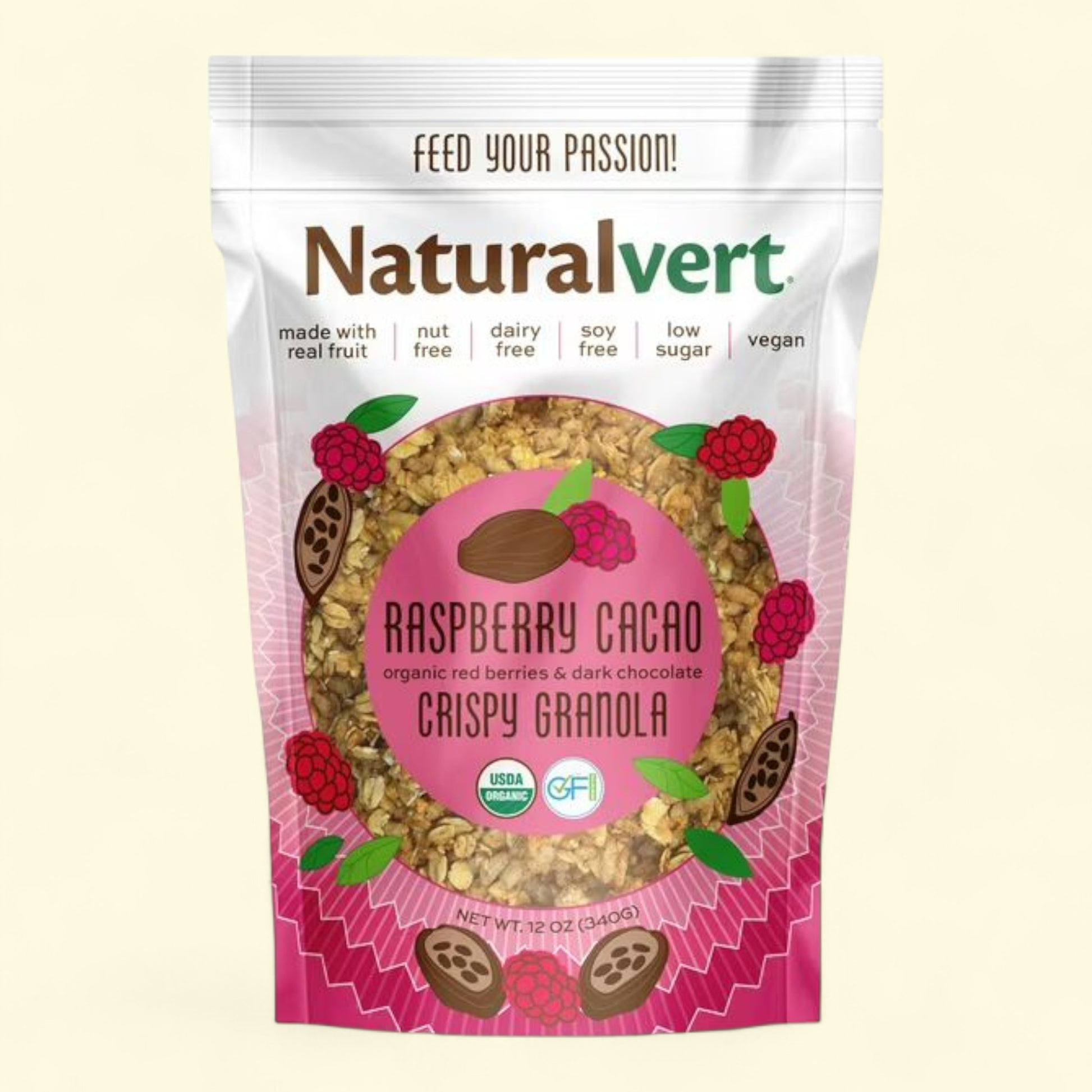 Naturalvert Granola, Raspberry Cacao Vegan 12 oz
