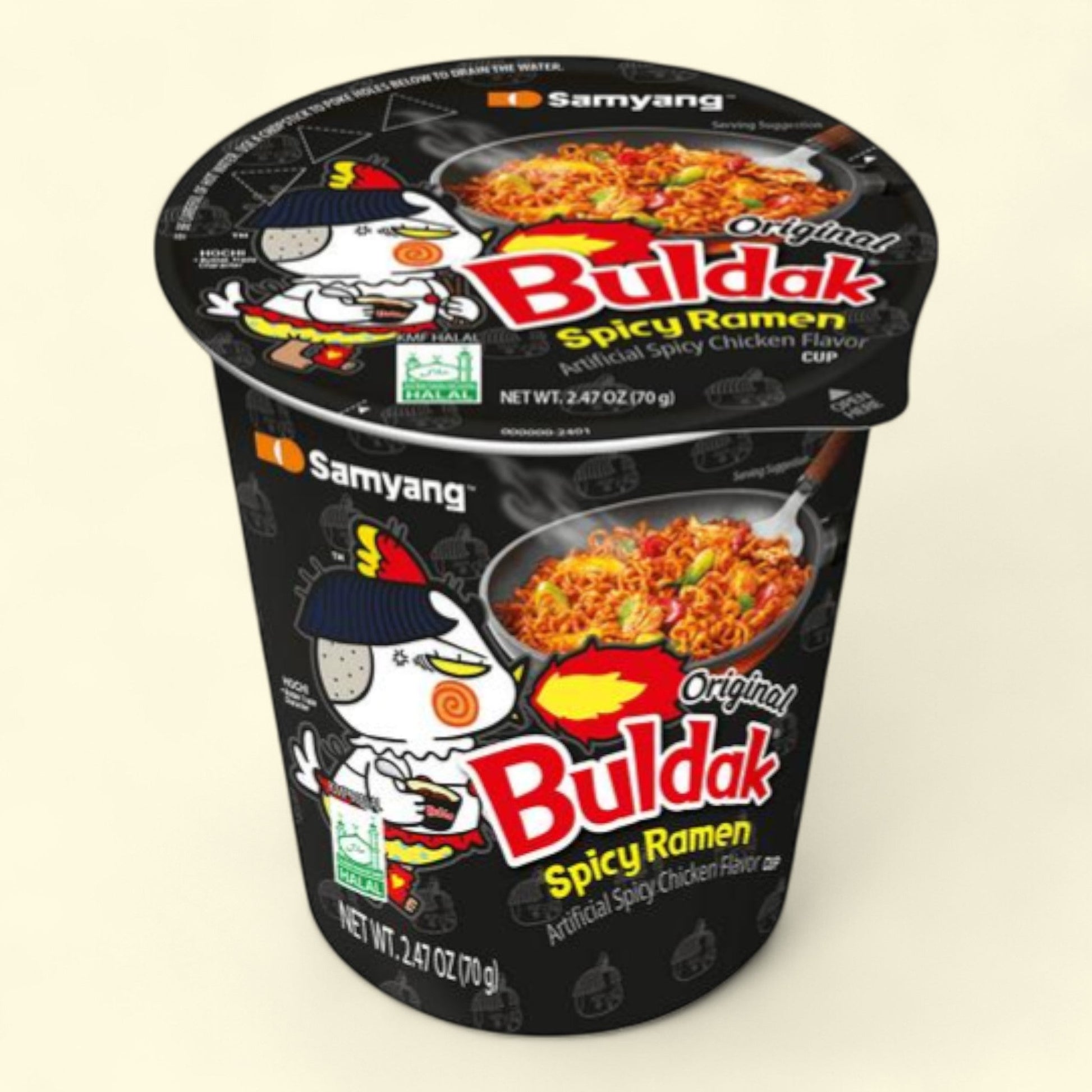 Indulge in the fiery flavors of Samyang Spicy Chicken Ramen, a popular Korean instant noodle dish that packs a punch. This delectable ramen is perfect for those who crave a spicy kick in their meals. Each bite is bursting with a rich and savory broth, combined with tender noodles that will leave you wanting more. Whether you're looking for a quick and satisfying meal at home or need a convenient option for lunch at the office, this convenient 2.46 oz package of Samyang Spicy Chicken Ramen is sure to hit the spot. Treat yourself to a bold and unforgettable culinary experience with every bowl.