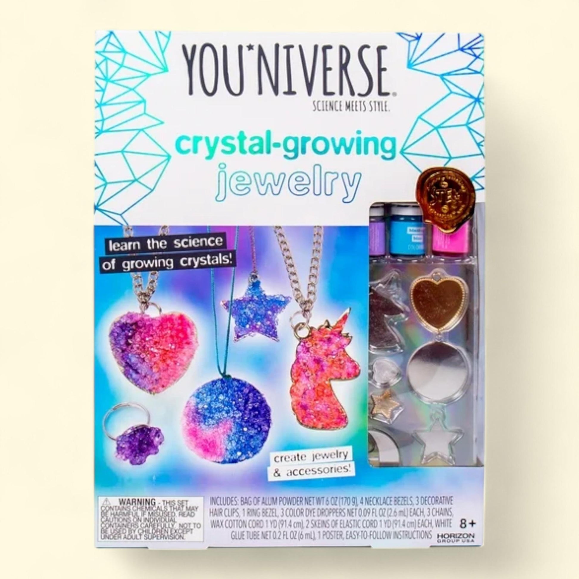 YOUniverse Crystal-Growing Jewelry Kit, Ages 8+, 1ct