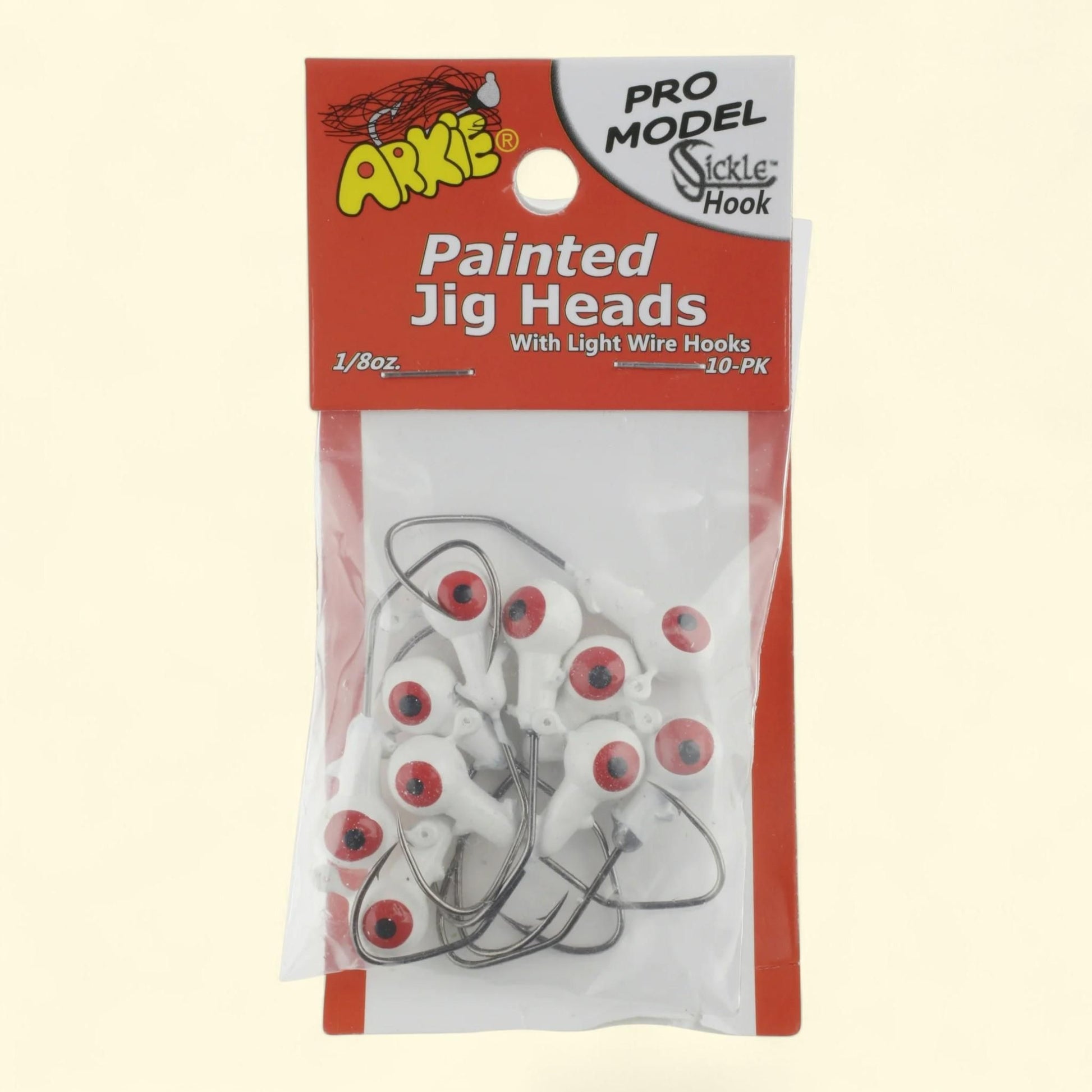 Arkie Lures Jig Head, Pro Model Sickle Hook, White, 1/8 oz.