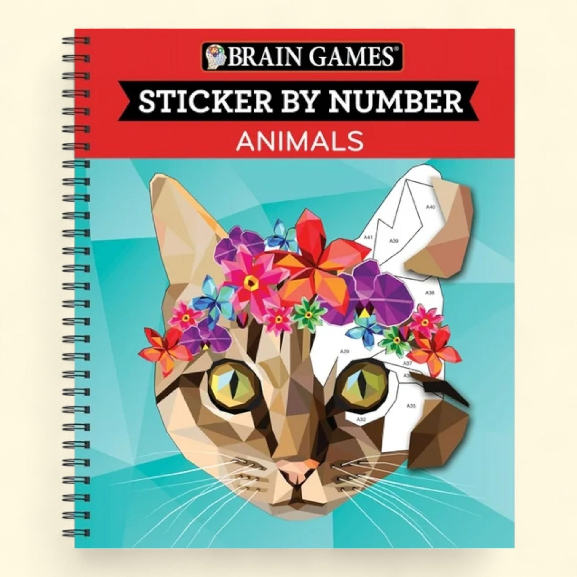 Brain Games - Sticker by Number: Animals, 28 Images to Sticker, Spiral-Bound