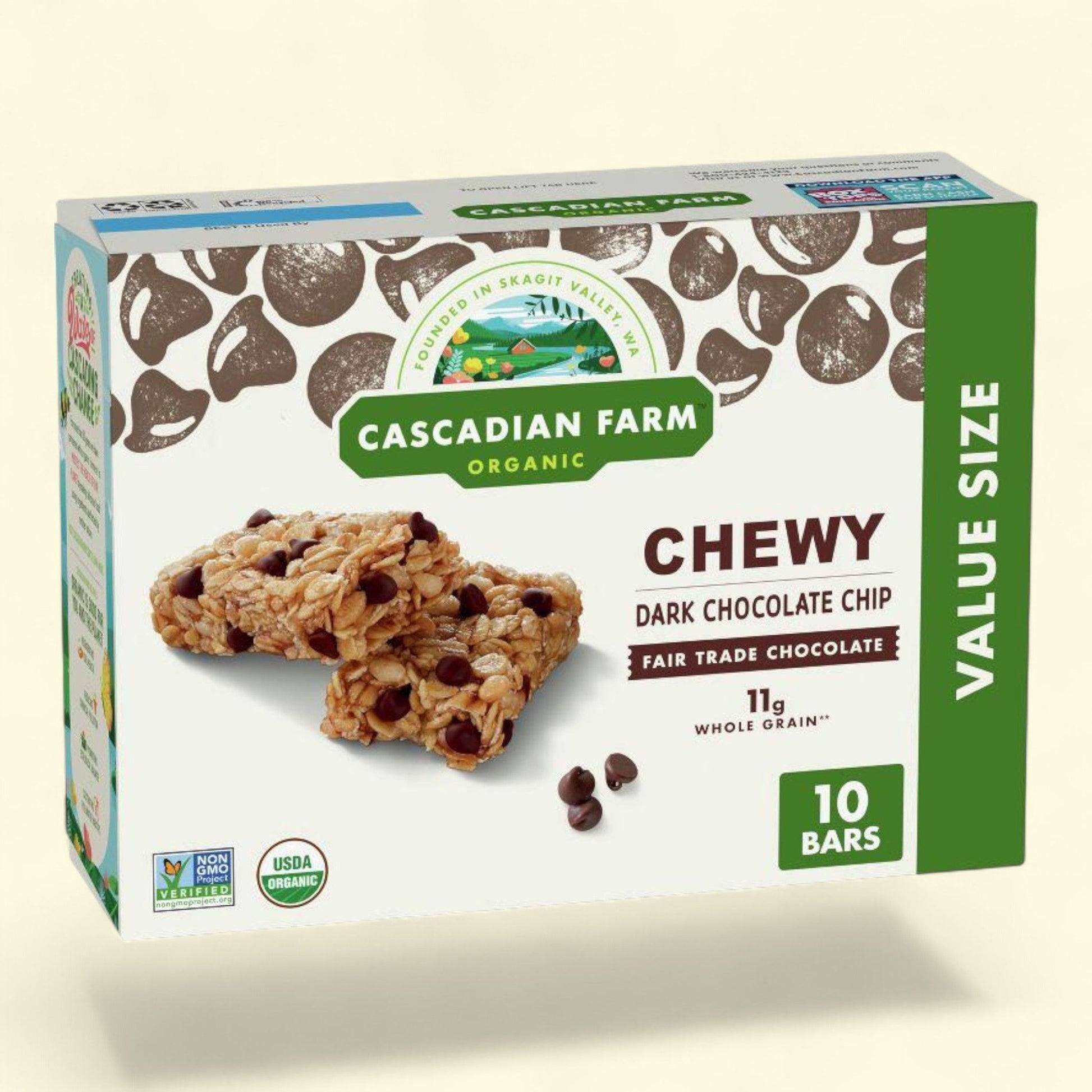 Cascadian Farms Organic Dark Chocolate Chip Chewy Granola Bars, 10ct/12.3oz