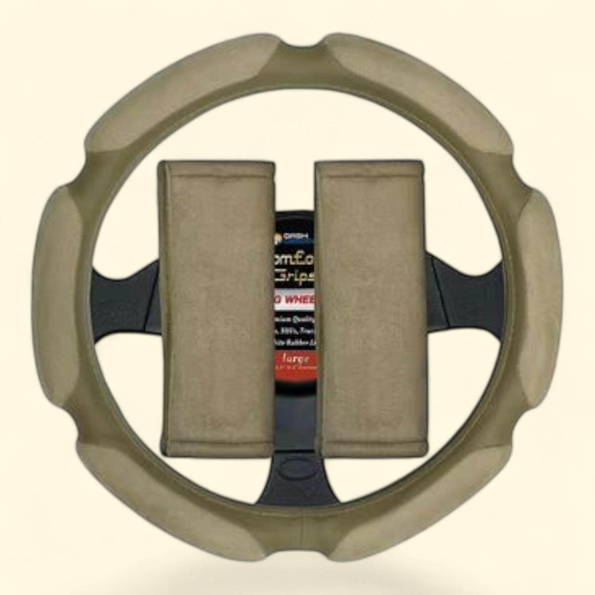 Comfort Grips Steering Wheel Cover/Seat Belt Cushions Combo Pack, Medium Tan