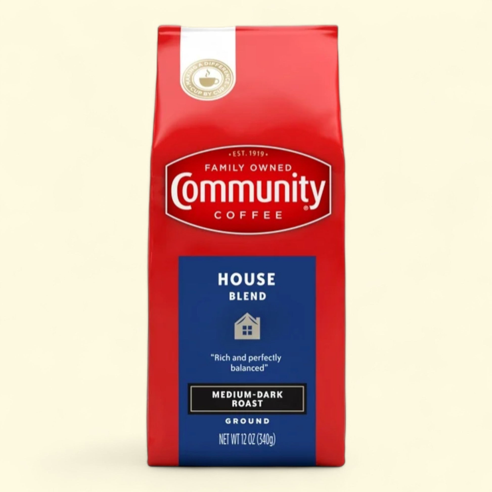 Community Coffee, House Blend Medium-Dark Roast Ground Coffee, 12 oz.