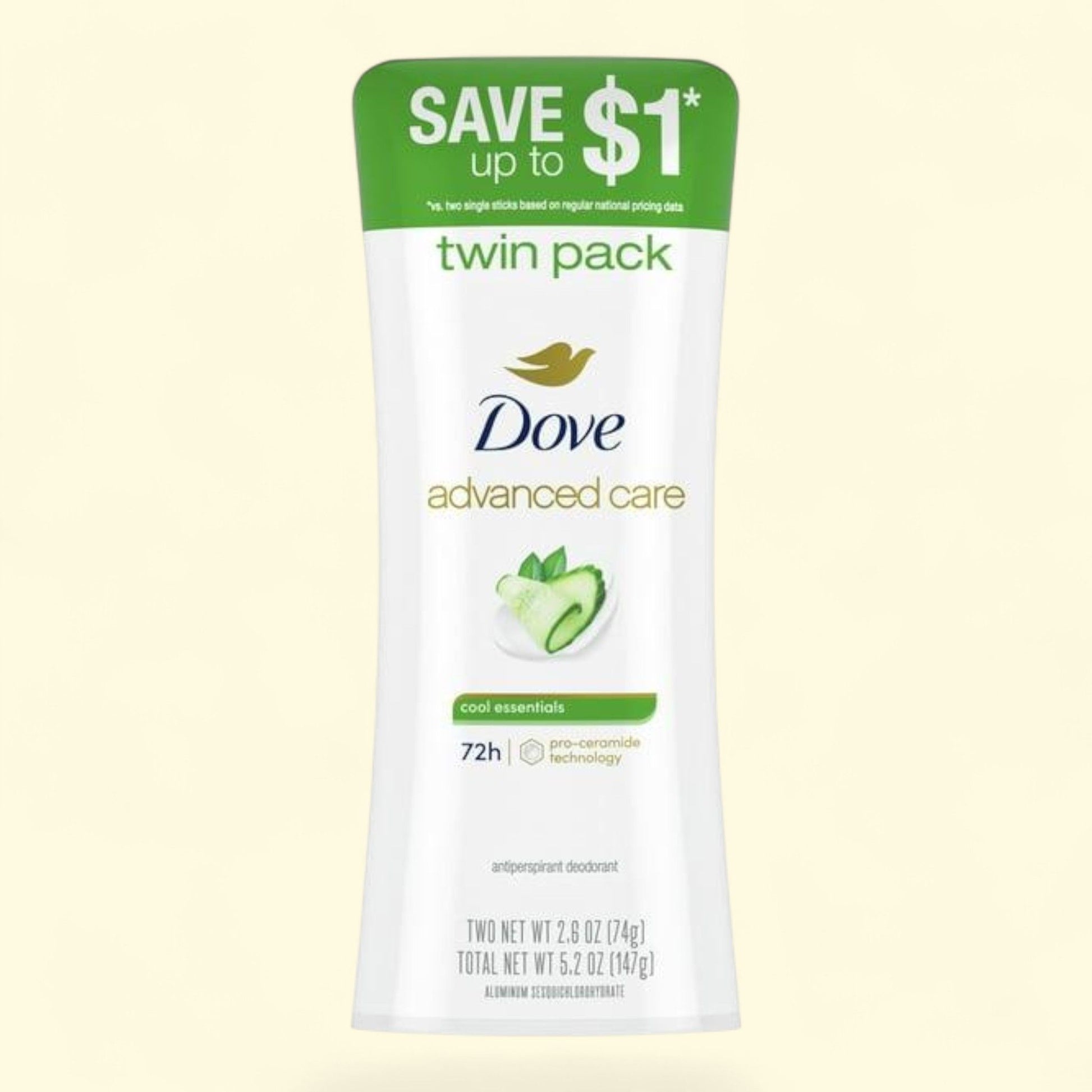 Dove Antiperspirant Deodorant Stick, Cool Essentials, 2.6 oz Twin Pack