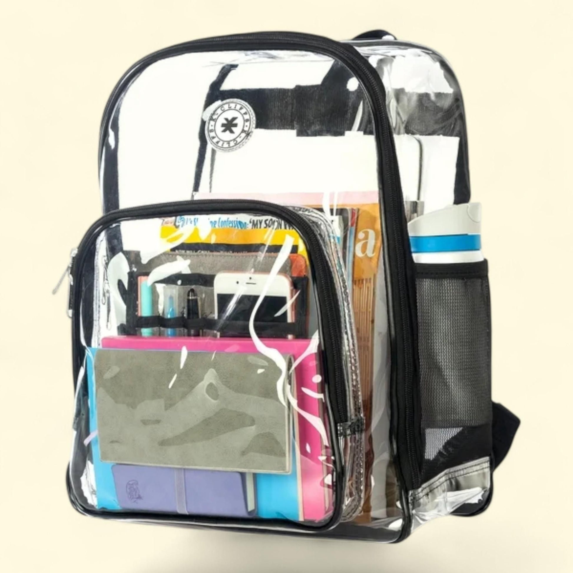 Unisex Heavy Duty Clear School Backpack, 17", Black Trim