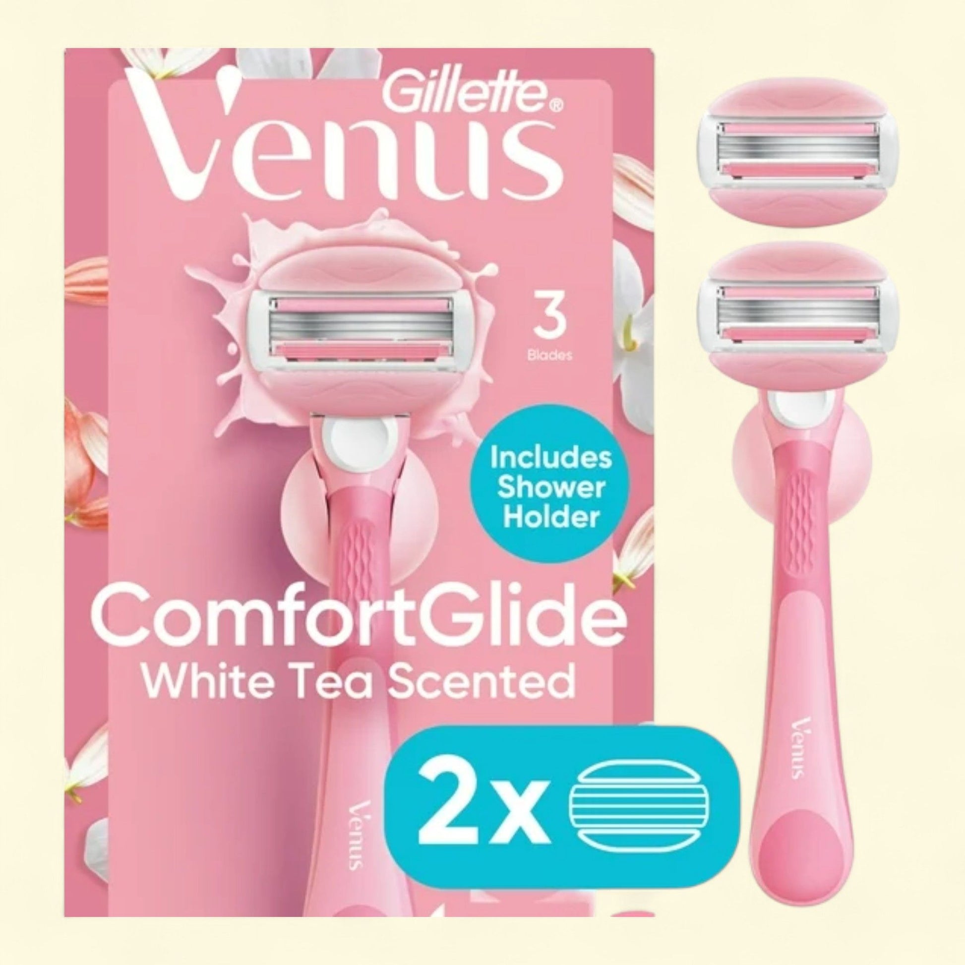 Venus ComfortGlide Razor, 3 blades, Manual, Handle and 2 Blade Refills, Pink, 1 pack